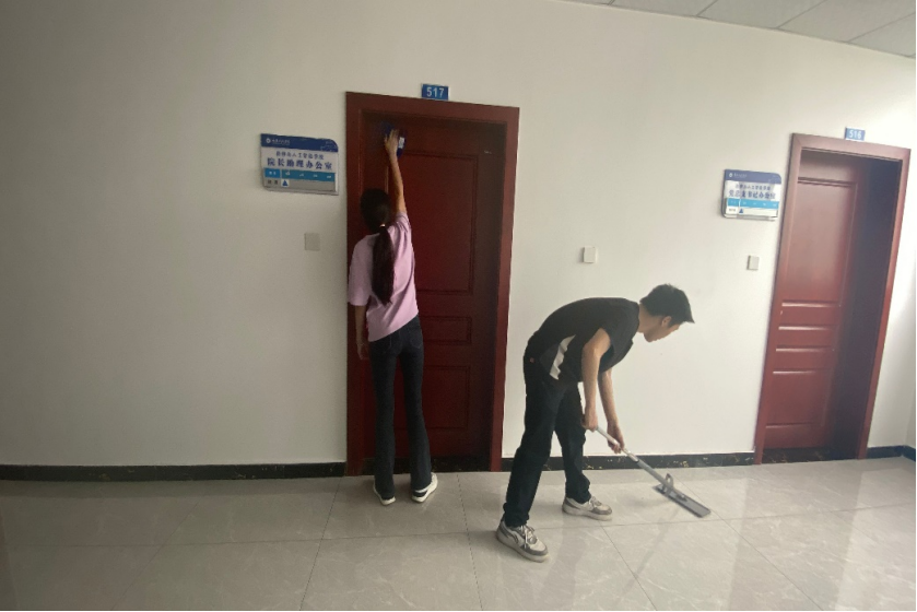 党员们在第七教学楼集合,明确清洁标准,领取清洁工具后到各支部清洁区域展开行动,对一楼大厅、过道、阅读区、休息处、办公室区、楼梯道等公共区域进行了全面清理。从上至下,从隔断到文化墙、从门窗到扶手、从墙面到地面,一擦二扫三拖四查,分工明确,相互配合。打扫结束后,各支部进行交叉检查再打扫,确保卫生死角清洁后,有序归还打扫工具,结束活动。
