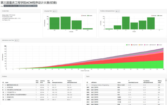 代码提交方面,本次比赛共收到了1690次代码提交,其中正确的代码达到了665段,正确率高达39%。大部分选手选择了C/C++和Java编程语言,而只有极少数同学选择Python语言,展现了他们对多种编程语言的熟练掌握。为了与市赛接轨,本次比赛首次采用了domjudge作为比赛平台,为选手们提供了更加专业和高效的竞赛环境。同时比赛期间由信息中心技术支持切断外网访问,有效规避了选手网上查阅资料的风险,这一举措不仅提升了比赛的公正性和权威性,也更容易激发选手的潜力。