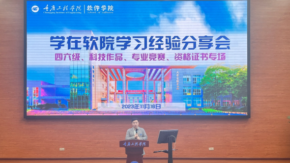 (文/图 软件学院 李阳)为了拓展学生学习成果,引导学生丰富课外学习,11月16日,软件学院在七教807报告厅开展“学在软院”学习经验分享会,专业教师彭娟、辅导员李竹君为学生作专题讲座,分享会由学生科长李阳主持,2021级、2022级近300名学生参与。