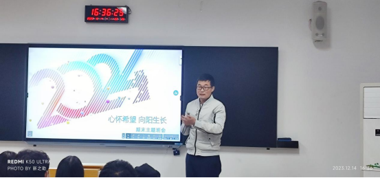 接着,火明刚向该班展开了“心怀希望,向阳而生”为主题的期末动员会。本次的动员会老师首先从考试内容、应试技巧、考试注意事项三个方面为同学们的期末备考月指明了方向,然后从专业知识、学科竞赛、科研创新、职业发展为同学们作了学习复盘,鼓励同学们多方面发展,勇于突破自己,同时也为同学们的假期作了规划,促进同学们对时间的合理安排与利用。