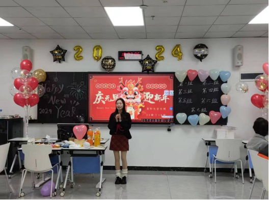 活动在任灿老师的新年祝福和期待中拉开序幕。一系列充满趣味性和竞争性的游戏调动了同学的积极性,快速抢答问题、动作模范和你有我没有的游戏,带动了现场气氛。此外,活动中还穿插了同学们的才艺展示,生动悦耳的流行歌曲和灵活优雅舞蹈表演,同学们纷纷随着节奏摇摆,释放压力,享受歌舞带来的愉悦。最后是充满仪式感的蛋糕分发,这个环节让整个活动达到了高潮。