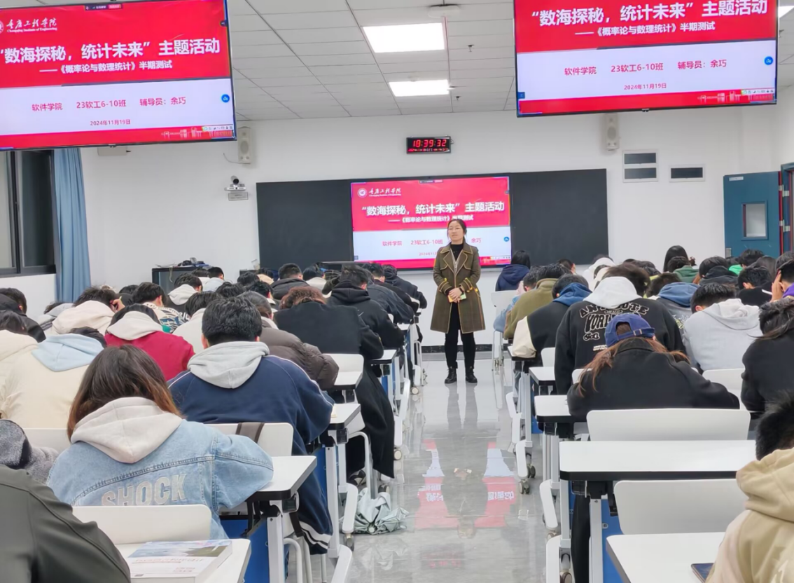 (文/图 软件学院 曾祥宏)为了解同学们对《概率论与数理统计》课程半学期知识的学习掌握情况,帮助同学们及时发现自身学习中存在的不足,同时也激发同学们的学习兴趣和竞争意识,促进同学们主动学习。软件学院23软工6-10班于11月19日在71201、71202、71205教室开展“数海探秘,统计未来”主题活动。