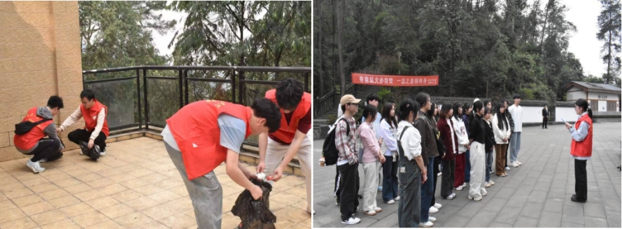 活动伊始,全体成员于南温泉公交站集结,沿建文峰步道开展徒步志愿行动。队伍自步道入口出发,途经凌风廊、听涛廊、松涛榭等景点,最终抵达解放重庆主战场遗址。沿途,学生分组进行垃圾清理,细致清理步道两侧废弃物,以实际行动践行“绿水青山”理念。同时,各部门分组展开徒步竞技,以全员抵达时间为依据评选团队奖项,激发协作热情。活动后半程,青橙志愿宣讲团于休整点开展主题宣讲,结合雷锋事迹与当代青年责任,阐释志愿服务对个人成长与社会发展的双重意义。
