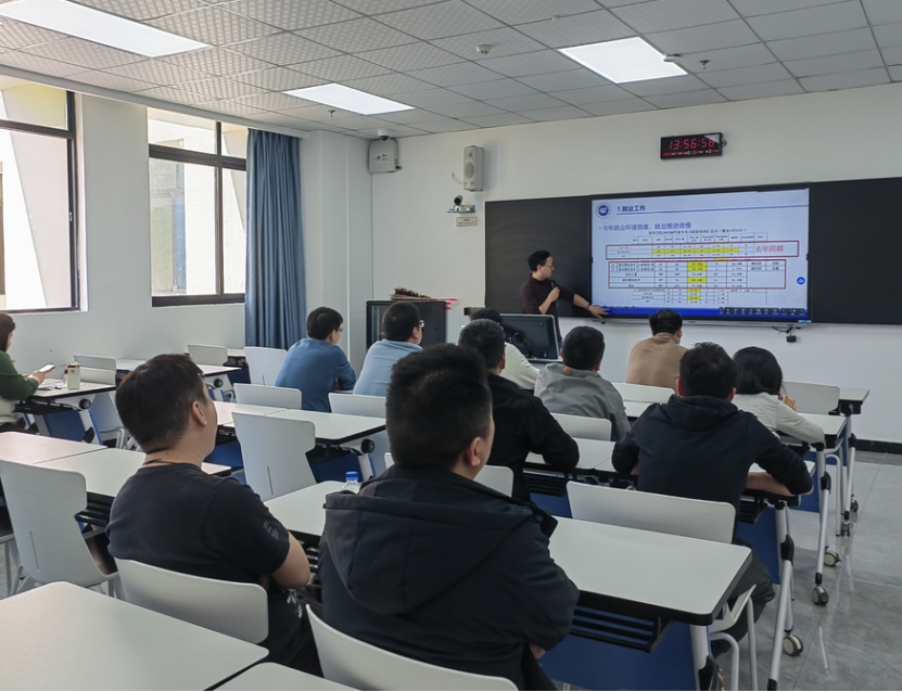 会上,石磊老师详细解读了最新的就业数据,由于就业环境愈发严峻,企业对毕业生的综合能力要求不断提高,不仅需要扎实的专业技能,更重视实践经验和创新思维。针对此现状,学院进一步完善了就业奖惩制度,以此激励全体教师积极投入学生的就业指导与推荐工作中。