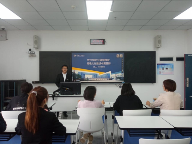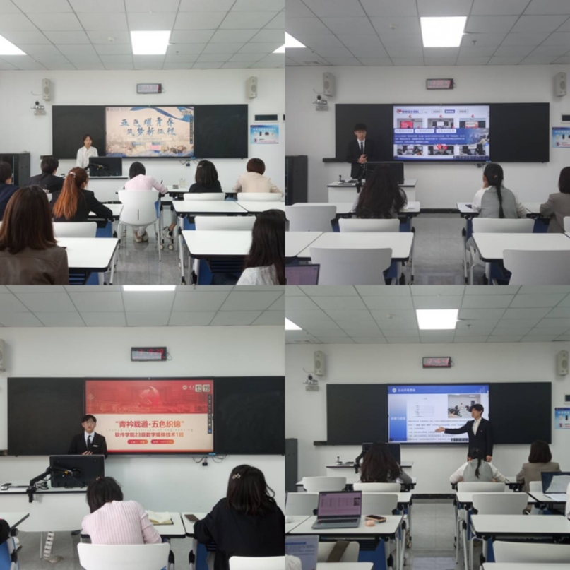 为进一步深化五色文化在班级建设中的实践成效,推动专业教育与文化素养深度融合,4月25日,软件学院2022级、2023级“红蓝绿橙金”五色文化建设中期答辩会在7教举行。活动通过“文化阐释+项目实践+现场答辩”的形式,展现软工学子的多元成长路径。软件学院全体辅导员担任评委,200余名学生现场观摩。