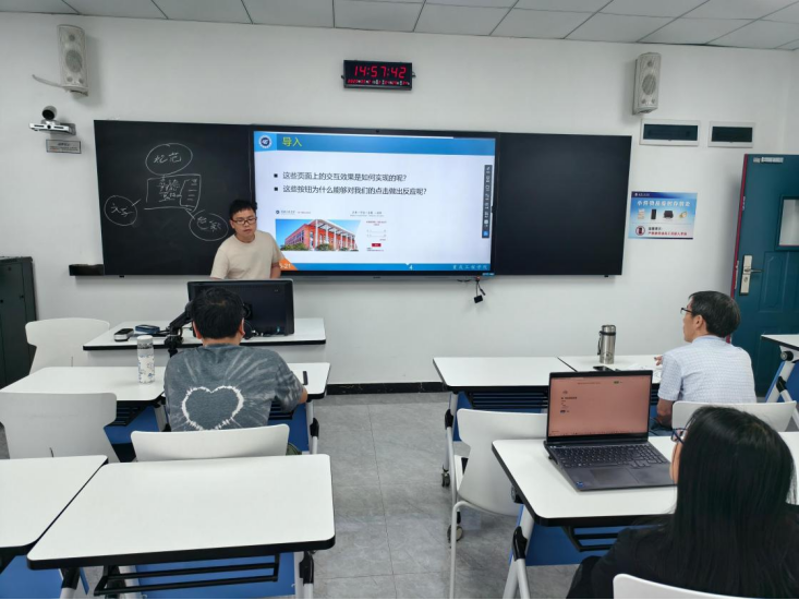 首先,数字媒体技术系石磊主任宣布比赛规则,安排试讲顺序。比赛现场,参赛教师们精心准备,各展所长。他们巧妙运用AI技术与本专业课程相融合,将专业知识与实际案例相结合,设计出形式多样的教学环节。