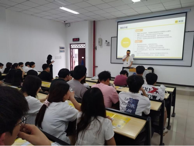 (图/文 软件学院 滕攀)2025年5月27日下午,软件学院在6301开展美团2025春季校园招聘宣讲会。本次宣讲会主要是针对2026届毕业生,软件前端开发、客户端开发及软件测试等岗位,招聘人数在70人左右。公司招聘负责人黄思源一行4人来校招聘,软件学院、计算机学院组织近200名2026届毕业生参加宣讲会。