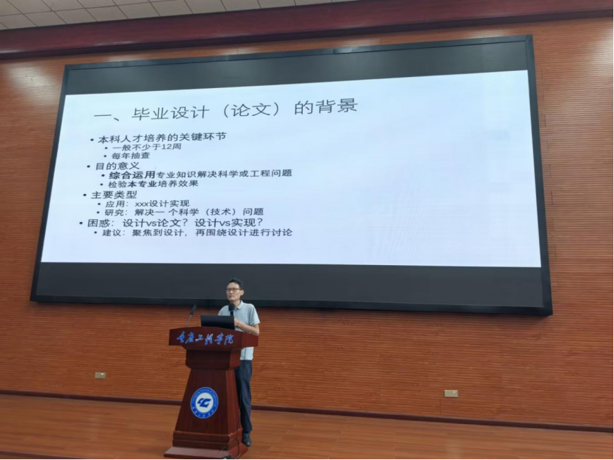 培训会上,张力生教授系统介绍了教育部对本科毕业设计(论文)的制度要求,他强调选题是决定论文质量的关键起点,并详细剖析了选题需考虑的四大核心因素,即专业性、创新性、可行性及应用价值,他结合实例重点阐释了系统设计与实现类课题的三大要点,即明确具体应用场景(如“基于物联网的智慧校园能耗监控系统”);清晰阐述分析设计的思想、方法与工具(如采用UML建模、敏捷开发流程)以及详述实现的技术路线、开发平台及资源(如SpringBoot框架、MySQL数据库、阿里云部署)。最后他通过正反案例对比,指导教师如何规避选题空泛、脱离实际等问题。