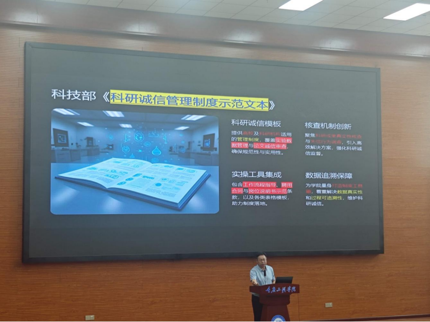 他强调三份文件构成 “基础规范-行业细则-国家纲领” 的完整制度体系,要求教师深刻认识科研作风排查覆盖 “所有人员、全流程环节、全周期管理” ,学院将建立分级责任追究机制。