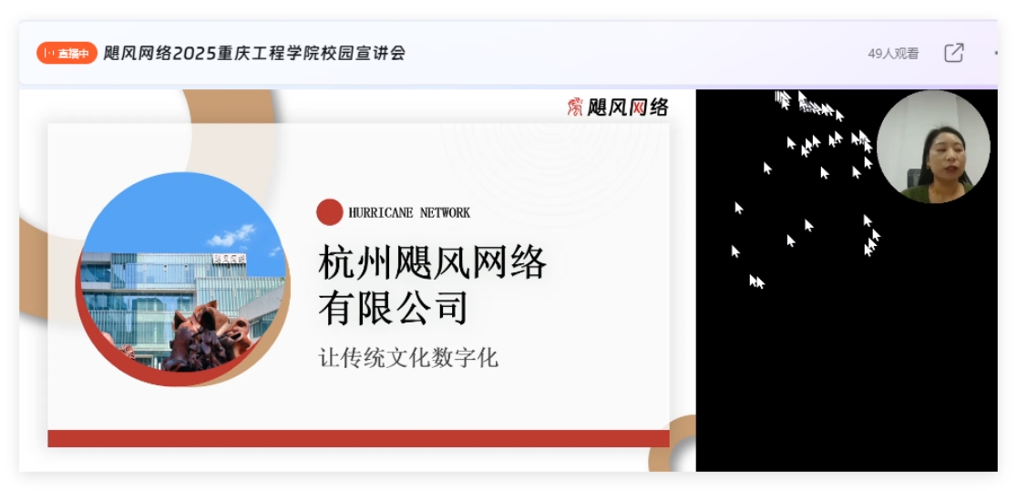本网讯(文/图 软件学院 滕攀)为进一步搭建优质就业平台,10月22日下午,软件学院和数字孪生产业学院在线上成功开展杭州飓风网络有限公司专场宣讲会。杭州飓风网络有限公司人力资源总监王银雪亲自宣讲。公司本次宣讲岗位主要是游戏UI设计、原画、测试及运营等岗位,50余名2026届生参加了此次宣讲会。