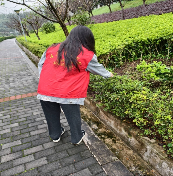 活动中,同学们身着红色志愿马甲,手持清洁工具,立即投入到河道清理工作中。大家分工协作,对河岸、草丛、石缝中的塑料瓶、包装袋、烟头等垃圾进行细致清理,以实际行动维护河道环境整洁。在劳动过程中,同学们相互配合,展现出团结协作的精神风貌。
