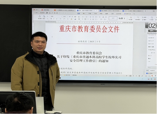 最后,葛亮老师传达了《重庆市普通本科高校学生校外实习安全管理工作指引的通知》精神要求全体教师强化与学生的常态化沟通,确保学生校外期间的安全管理