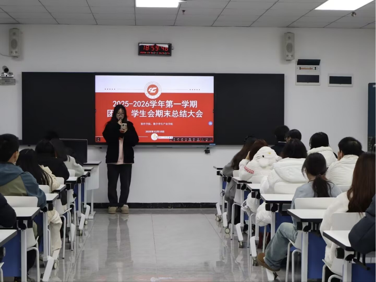 (文/图 软件学院 戴笠 秦子茹/汤继翕为全面总结本学期工作成果、表彰先进部门,进一步凝聚组织力量、明确下学期工作方向,切实巩固团学工作实效,激发各部门干事的责任意识与创新活力1218,软件学院、数字孪生产业学院于第七教学楼1201教室召开软件学院、数字孪生产业学院团委学生会期末部门总结大会。学院团委书记张运软件学院、数字孪生产业学院团委学生会全体成员共同参与本次总结会议。