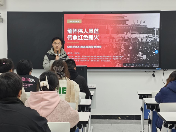 本次领学活动由李正杰同志担任领学人,以缅怀伟人风范传承红色薪火为核心主题,围绕伟人成长历程、革命关键节点、经典著作研读、精神内涵提炼四个维度展开系统领学。领学过程中,李正杰同志结合珍贵的历史史料、生动的革命案例,辅以互动思考环节,深入浅出地讲解了毛泽东同志在不同历史时期的革命实践与理论探索,让大家对红色历史与革命精神有了更为全面且深刻的理解。活动尾声,全体成员怀着崇敬的心情共同朗诵经典著作《沁园春·雪》,展现出对伟人的深切缅怀与对祖国山河的无限热爱;随后,全场齐唱《没有共产党就没有新中国》,嘹亮的歌声回荡在教室,进一步凝聚了红色力量,激发了爱国热情。本次红源杯党员领学活动在庄重而热烈的氛围中圆满落幕。