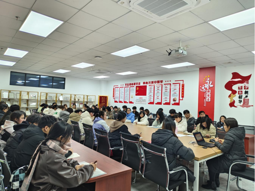 刘子菱书记指出,当前正处于“十四五”规划收官及“十五五”规划开篇的关键阶段,党的二十届四中全会是党在全面建设社会主义现代化国家、向第二个百年奋斗目标进发的关键时刻召开的一次十分重要的会议,全体师生必须深入贯彻学习全会精神,用以指导实践系统解读“十四五”时期我国在经济社会发展方面取得的显著成就也客观分析当前所面临的国际、国内环境重点聚焦“一个指导思想、六项重要原则、七个主要目标及十二项战略任务”,“十五五”规划建议进行解读,同时结合学生实际,就推动全会精神落地生根提出明确要求希望大家加强理论学习,强化实践担当,在改革创新中勇立潮头结合学院高质量发展的总体思路和产教融合人才培养具体举措,勉励同学们要培养自主学习能力纵向深耕专业技术、横向拓展专业跨界、立体淬炼职业素养,并充分发挥党员示范带头作用,密切联系师生,凝聚奋进合力。