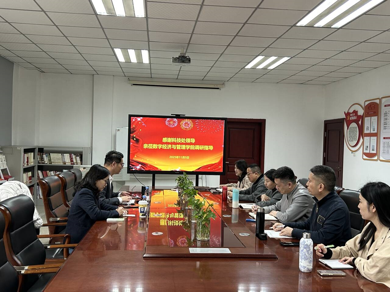 (文/图   数字经济与管理学院  李玲)2005 年 10 月 6 日,科技处汪俊良副处长、陈心悦老师到数字经济管理学院开展学科科研工作专项调研。调研会议在学院3413会议室召开,学院副院长李玲、徐先航,科研团队负责人王渝、刘婷婷、薛进凤及科研骨干唐菠参与调研。