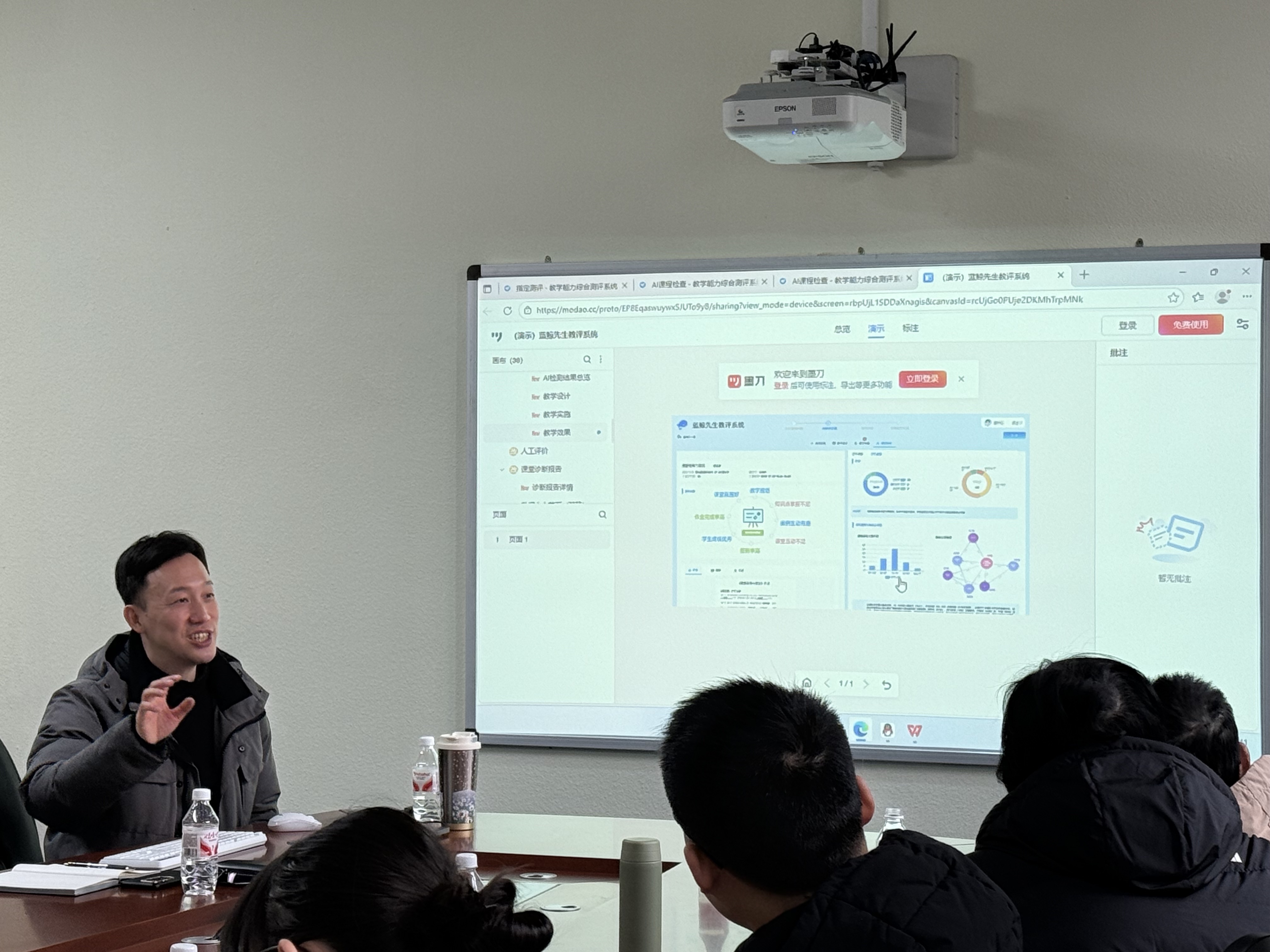 会上,喻旸主任首先介绍了研究中心重点研发项目“蓝鲸先生教评系统的建设背景与整体规划,强调系统将致力于通过AI技术与专业指标体系的深度融合,赋能教学质量的智能化评价。