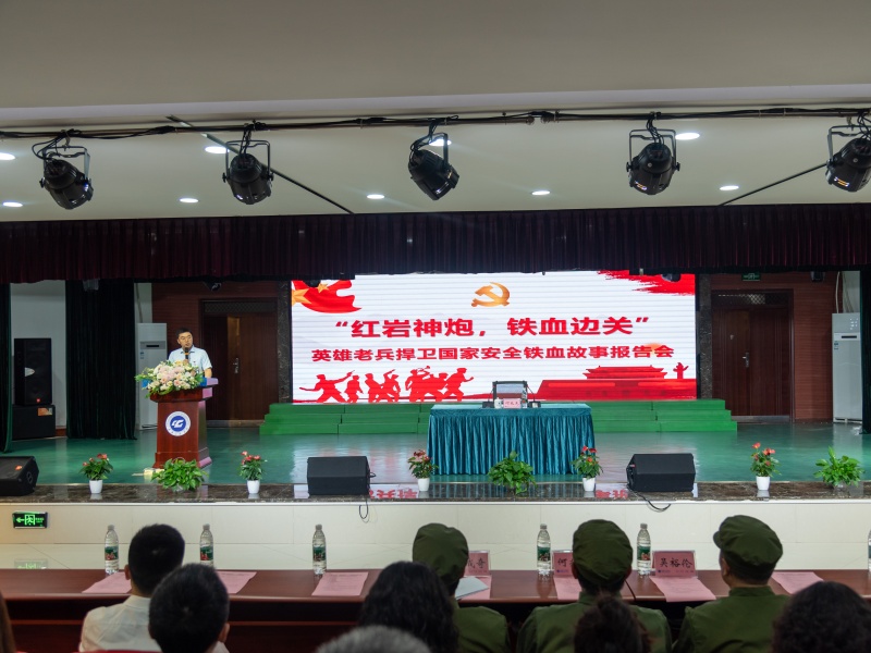 本网讯(文/双桥校区大学生会议管理服务中心 李仟 图/双桥校区记者团)5月16日上午,“红岩神炮,铁血边关”——英雄老兵捍卫国家安全铁血故事报告会在我校双桥校区隆重举行。报告会由重庆市双桥经济技术开发区管委会、重庆红岩重型汽车博物馆、重庆工程学院联合主办,重庆市双桥经济技术开发区政府机关单位领导及员工代表、我校师生代表600余人参加。