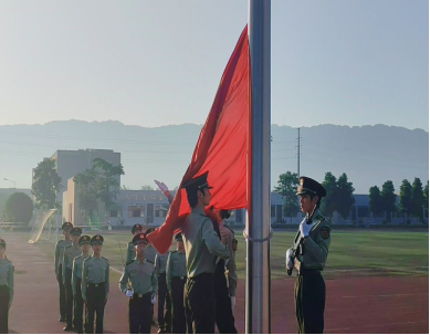伴随着嘹亮的歌声,五星红旗冉冉升起。