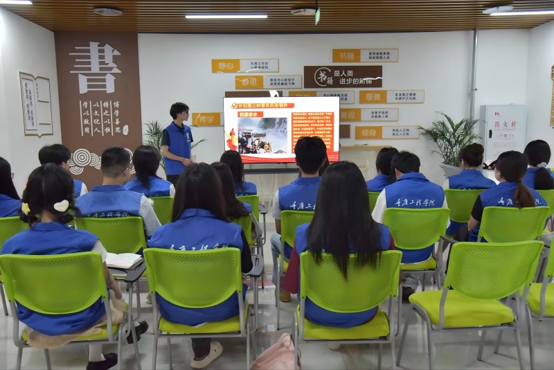 7月3日上午,“心”桥志愿服务团在学生社区举办了“红色故事传承志,青春担当筑梦程”主题红色故事分享活动。活动由黄籽其主讲,全体成员参与。通过深入学习习近平新时代中国特色社会主义思想,回顾长征路上的重要历史事件,以及《七律·长征》诗词朗诵,全体成员深刻领悟了长征精神的内涵,为后续实践活动筑牢了思想根基。