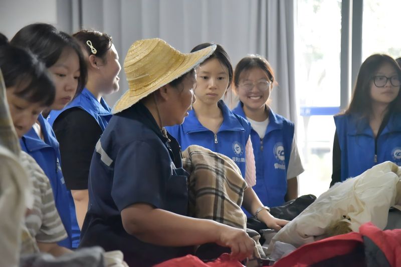 当天中午,志愿服务团开展了“衣暖人心,行暖乡情”衣物捐赠活动。前期通过线上线下宣传,共收集到短袖、外套、棉衣、棉被等百余件衣物。志愿者们对衣物进行分类整理后,将其运送到社区指定地点,为环卫工人等社区困难群众送去温暖。捐赠活动不仅提供了物质帮助,更传递了社会的关爱与温暖。