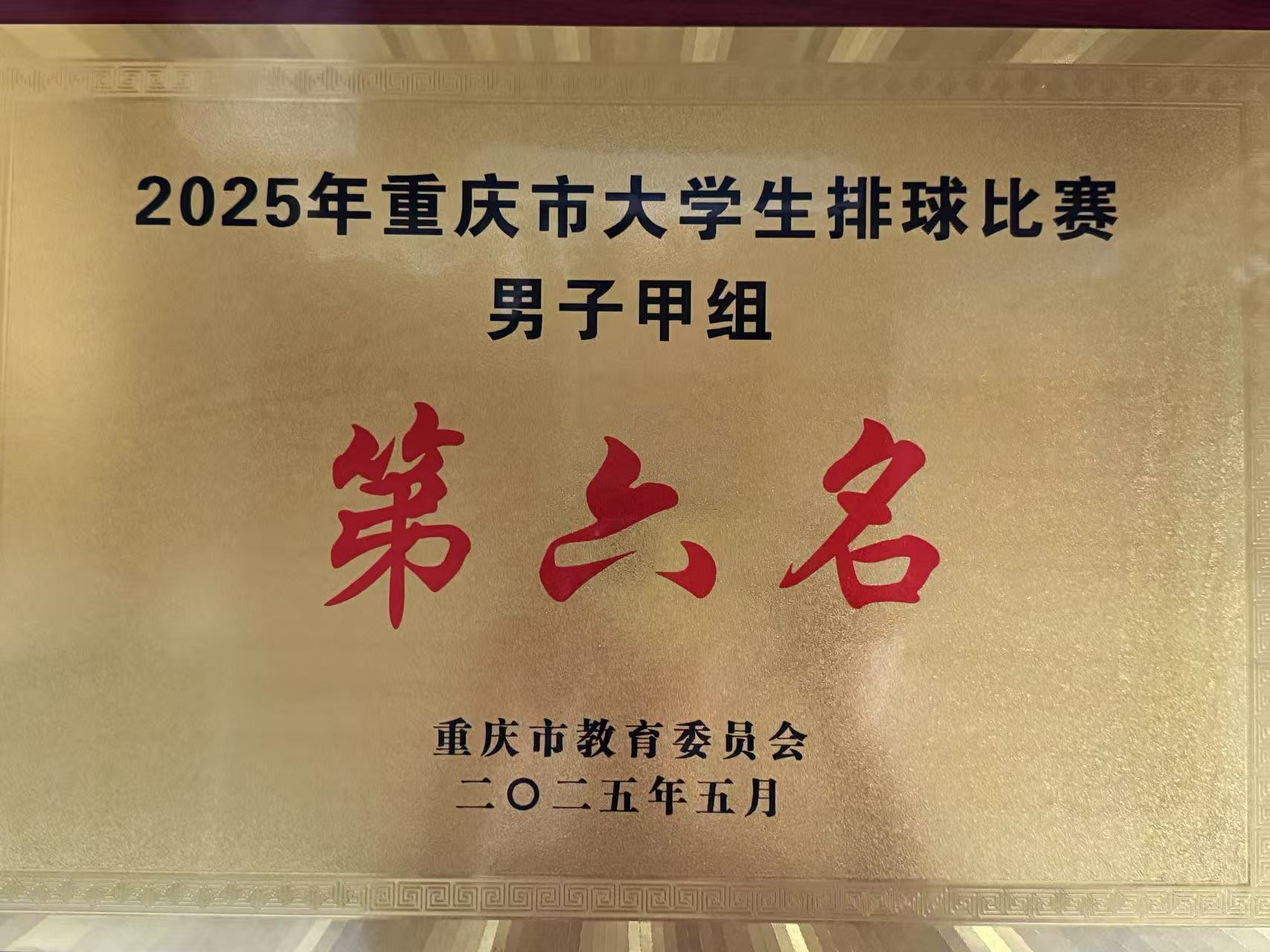 2025年5月13日-17日,由重庆市教育委员会主办、西南政法大学承办的2025年重庆市大学生排球比赛在西南政法大学体育馆举行。经过激烈争夺,我校排球队喜获男子甲组第六名。
