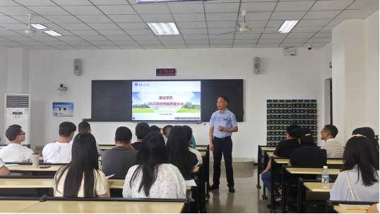 本网讯(文/图 基础学院 张成林)弘扬师者匠心,共谱育人华章。为弘扬先进教育理念,彰显教师育人风采,发挥模范引领作用,6月11日,基础学院在第一教学楼202组织开展了“立足岗位 践行教育家精神”主题宣讲活动暨优秀教师选拔活动,学院领导班子成员及全体教职工参与。