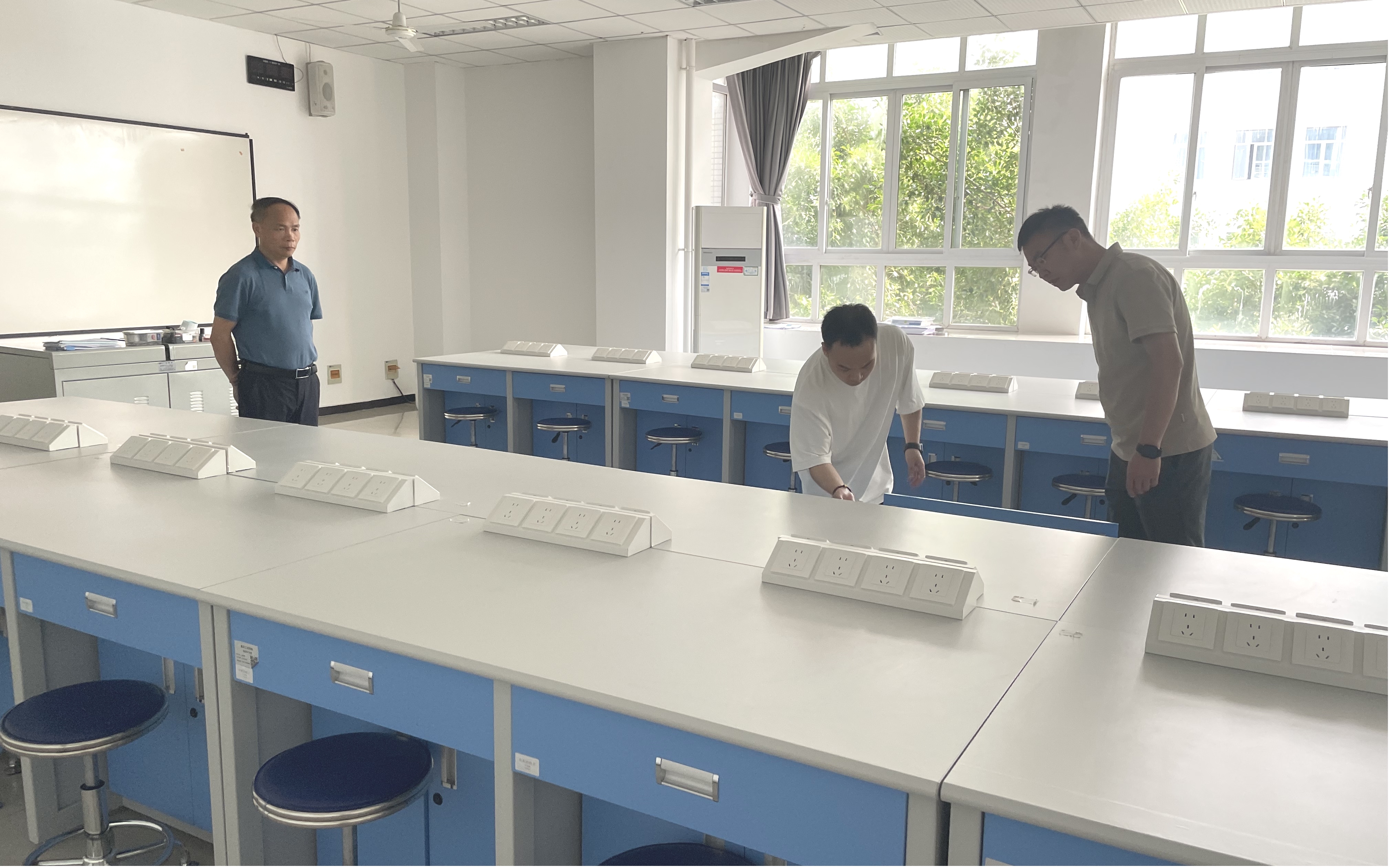 (文/图 杨佳丽)为切实保障暑期校园安全稳定,营造整洁、有序、健康的校园环境,让广大师生安心离校、平安度假,2025年7月8日,基础学院院长蒋国华率队开展暑假前实验室安全专项检查,对英语语音实验室、物理实验室、计算机基础实验室等重点场所进行全面检查,确保放假期间实验室的安全稳定,消除潜在安全隐患。