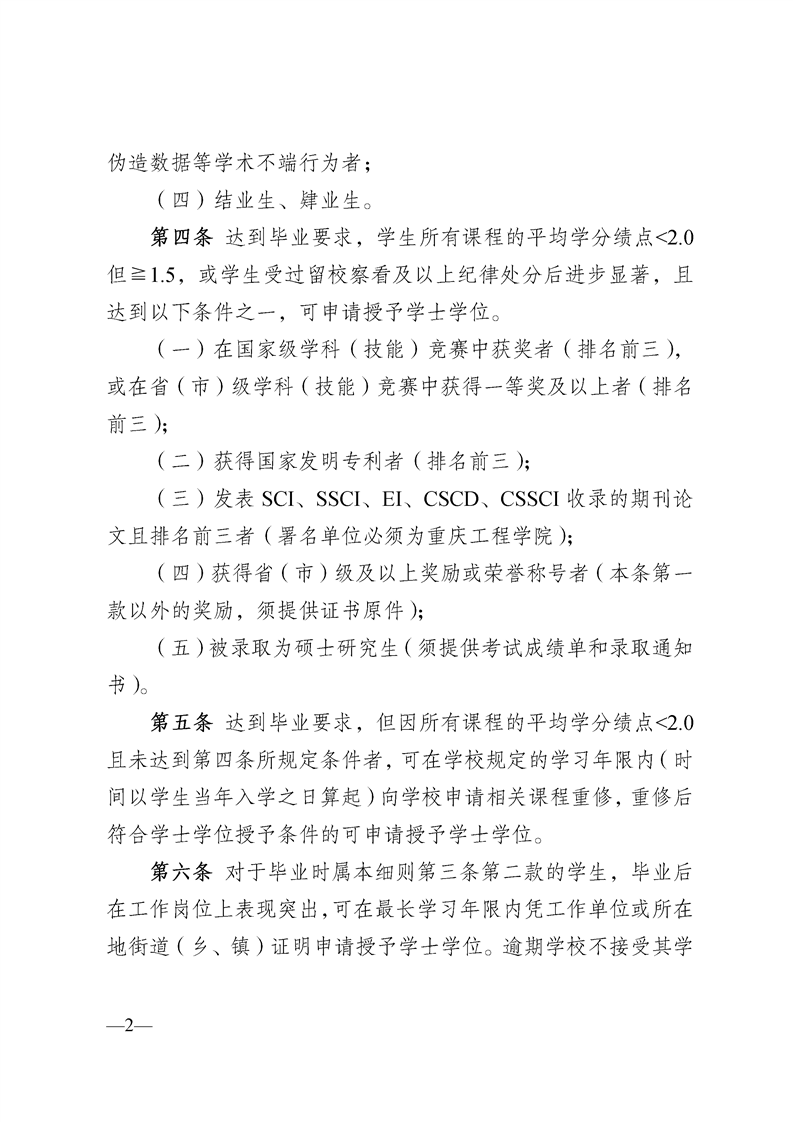 > 重庆工程学院普通本科学生学士学位授予工作细则