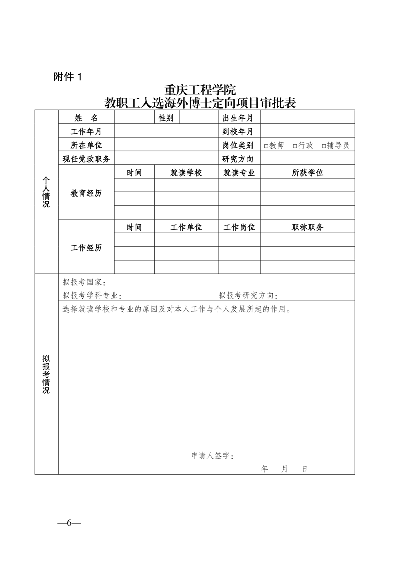 重庆工程学院骨干提升海外定向博士项目实施方案