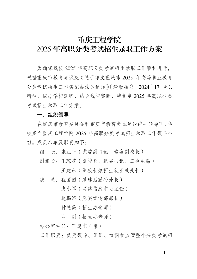 当前位置:首页 > 招生考试 > 重庆工程学院2025年高职分类考试招生录取工作方案