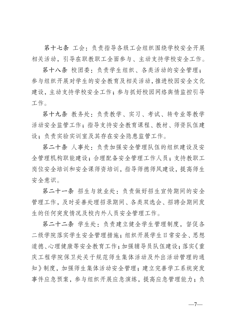 当前位置:首页 > 基本信息 > 中共重庆工程学院委员会 重庆工程学院安全稳定工作“党政同责、一岗双责”制实施办法(修订)