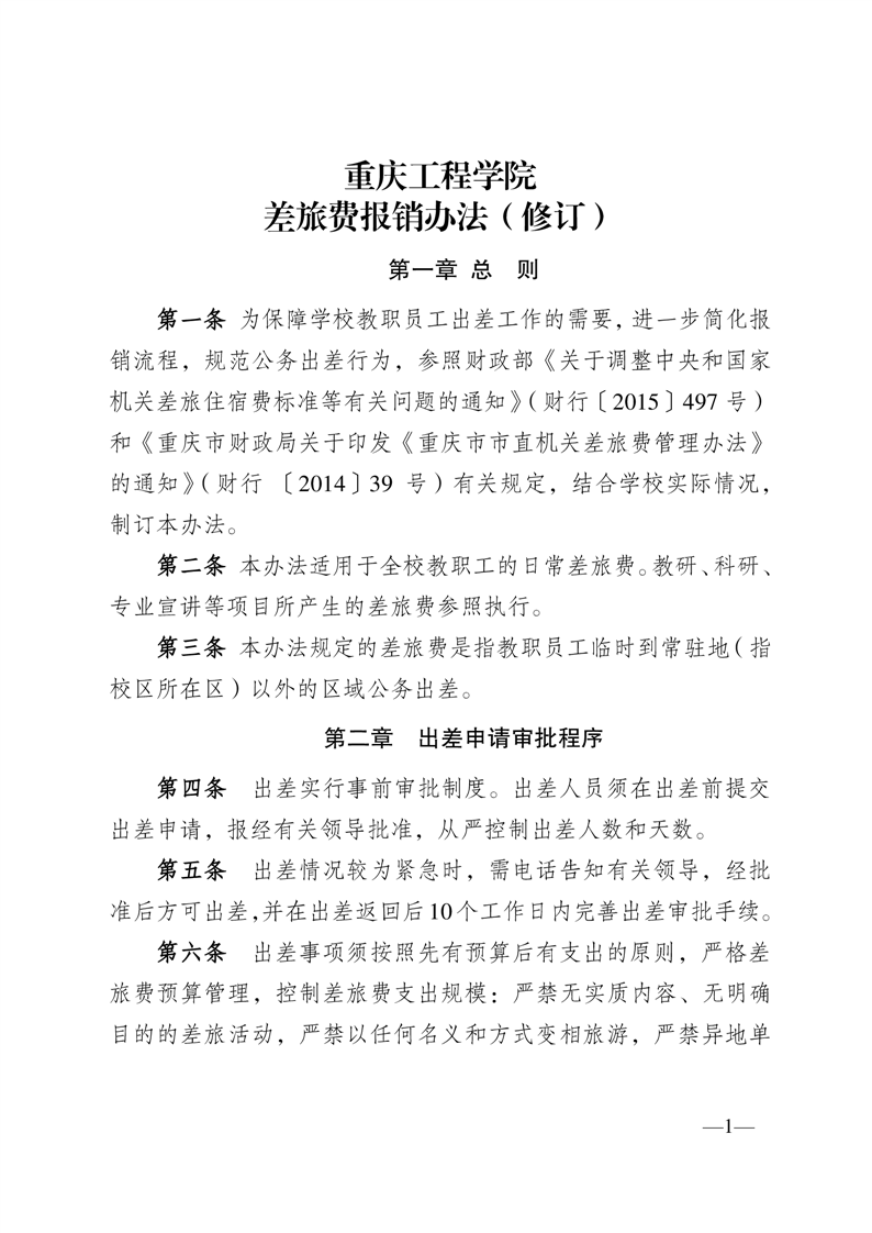 当前位置:首页 > 财务、资产及收费 > 重庆工程学院差旅费报销办法(修订)