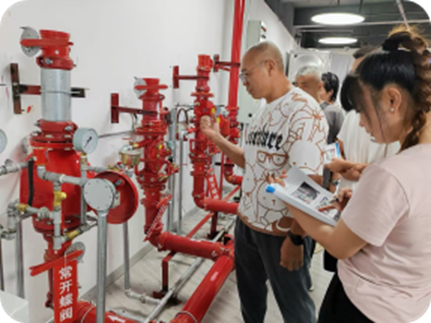 在培训现场,教学环境专业,各类先进的消防设施设备一应俱全,为学员提供了高度仿真的实践操作场景。经验丰富的授课讲师采用理论讲解与实操演示相结合的教学方式,从消防设施的基础原理讲起,逐步深入到复杂设备的操作流程与维护要点。学员们全神贯注地聆听讲解,认真记录重点知识,并积极参与到实操训练环节中,现场学习氛围浓厚热烈。