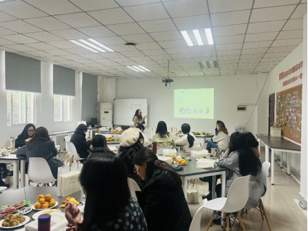在此过程中,老师们边品尝美食边聆听讲解,讲解结束后,现场进入了自由交流环节。老师们纷纷就珠宝鉴定及其他相关知识向鉴定师提问,大家积极互动,气氛热烈。
