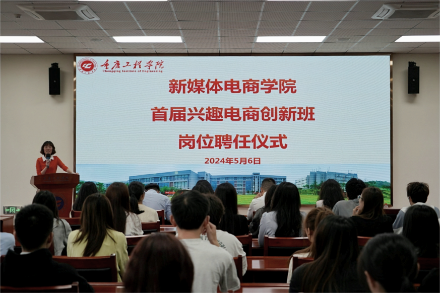 2024年5月6日上午9:30,新媒体电商学院在行政楼201会议室隆重举行“兴趣电商创新班”岗位聘任仪式。