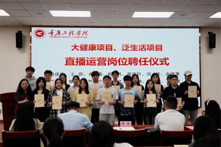 学院副院长曾霞作为聘任官对大健康项目、泛生活项目共20位同学颁发直播运营岗位聘书,并合影留念。
