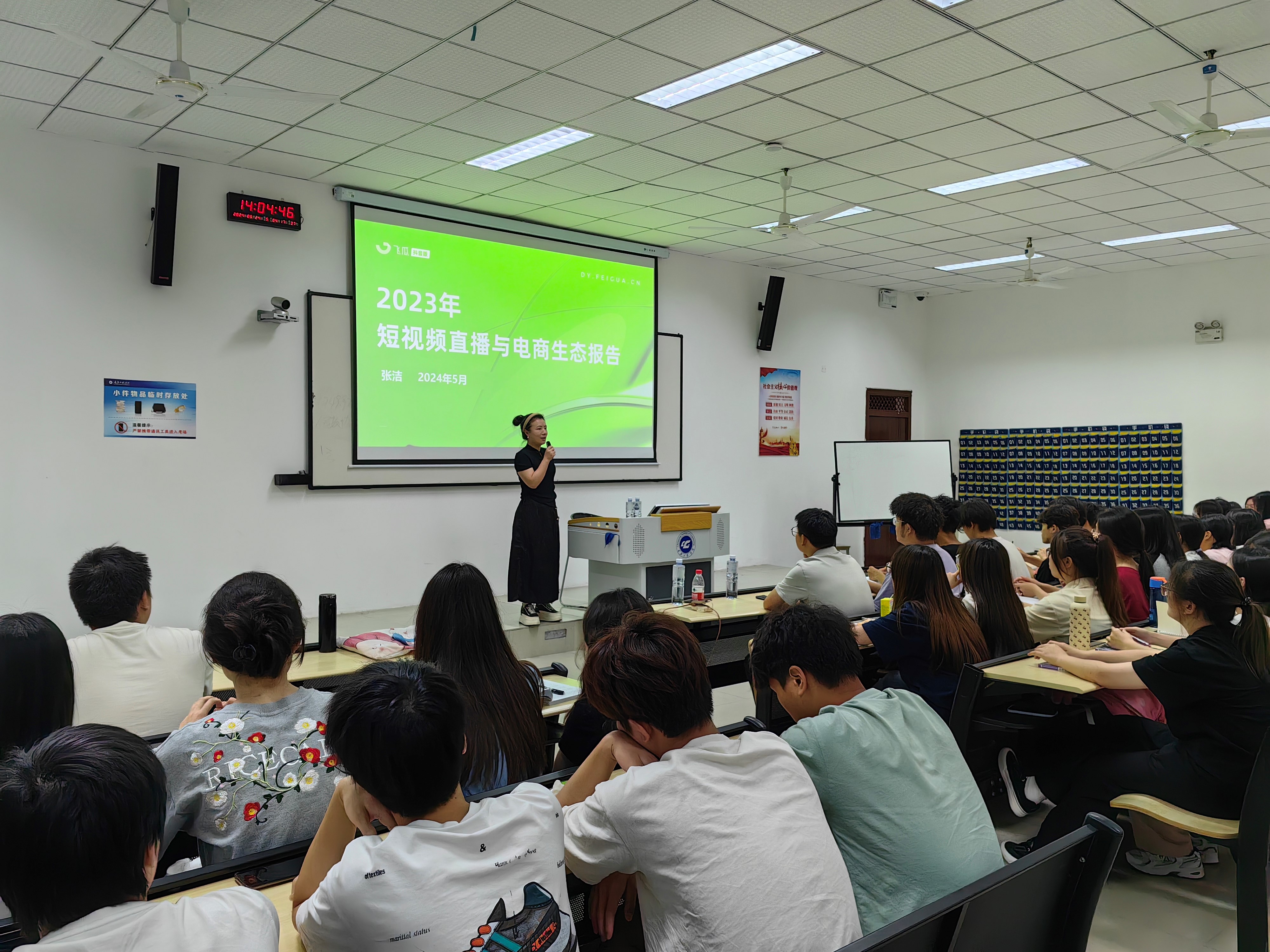 为帮助学生掌握电商行业前沿信息,知晓行业能力要求,提升学生学习能力和育人实效。近日,新媒体电商学院在双桥校区第一教学楼S1107教室,为2023级电子商务专业开展了“直播电商与短视频电商的行业数据和案例分析”讲座。