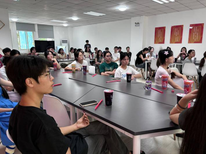 活动现场同学们手持奶茶,脸上洋溢幸福的笑容。美团方管理人员陈俊娟老师与同学们交流,讲解美团节日流程更新知识点。同学们积极参与,表示受益匪浅。