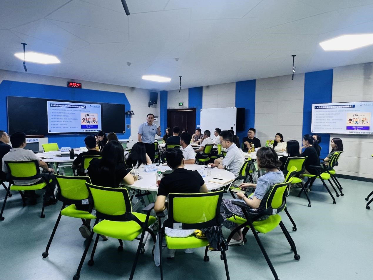 在学生管理技能培训环节,严副院长提出了对实训学生的全面认识,包括学生的心态、技能水平和目标感等方面。他强调,实训导师需要根据学生的实际情况,采取有效的管理策略,以确保项目教学的有序、有效和有结果。
