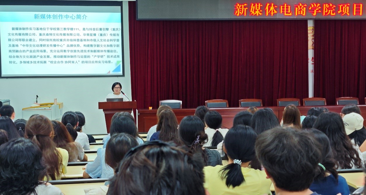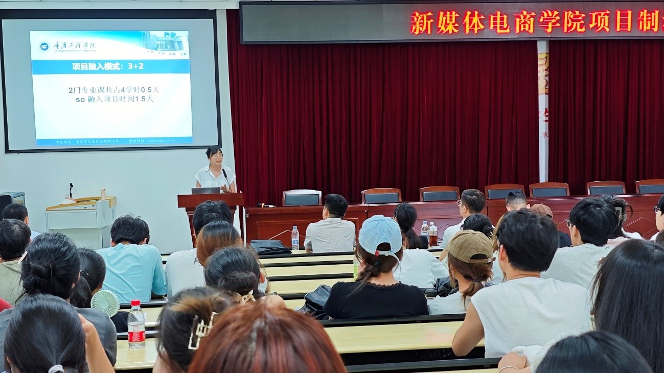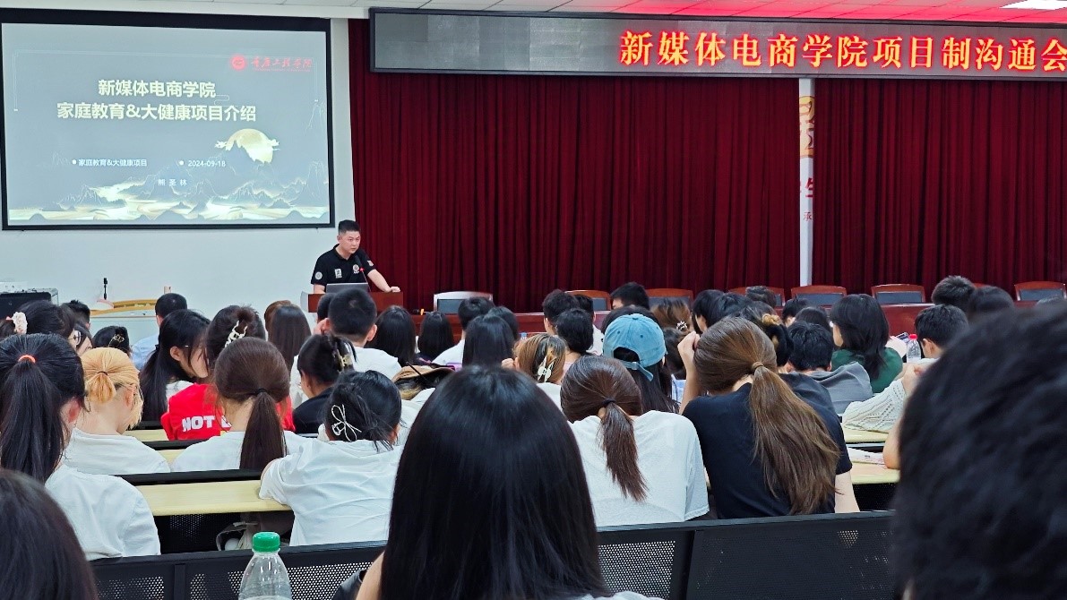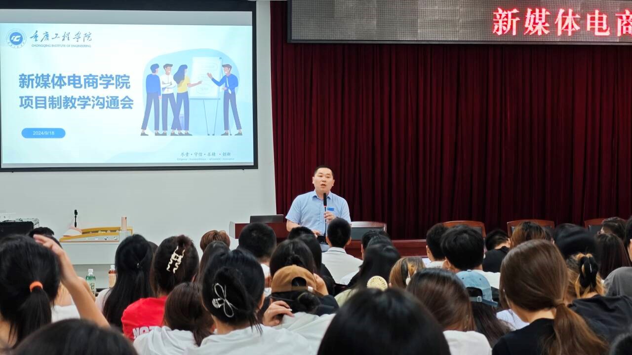 2024年9月18日14:00,新媒体电商学院在6302组织召开了项目制教学沟通会。此次会议旨在深入介绍项目制教学的背景、意义及实施方案,促进师生之间的交流与互动。新媒体电商学院副院长严伟、新媒体电商研究所所长文俊峰、各项目负责人、全体教师以及电商22级、网媒22、23级全体学生参加了动员大会。会议由院长助理宋超主持。