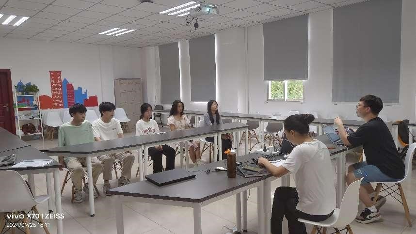 本次面试官,由京东2名企业导师和3名项目实训导师以及23级电商辅导员老师组成,学生根据事先安排好的5人小组进行等候及面试。每位学生有1-2分钟时间进行自我介绍,内容包括但不限于个人基本信息、学习经历、专业技能、项目经验及加入项目的期望。