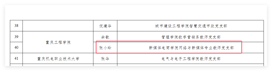 近日,中共重庆市委教育工作委员会公布全市高校“双带头人”教师党支部书记“强国行”专项行动团队名单,我院网络与新媒体专业教师党支部入选。