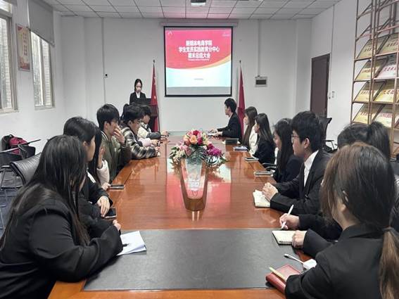 在庄严的聘任仪式后,中心负责人黄位同学系统总结了本学期工作成果,特别指出中心成功开展了多项活动,取得的显著成效。这些成绩的取得,离不开每一位学生助理的辛勤耕耘与无私奉献。同时,他也对下年度的工作进行了规划,鼓励学生助理们继续秉持团结协作、勇于担当的精神,为中心的发展添砖加瓦。