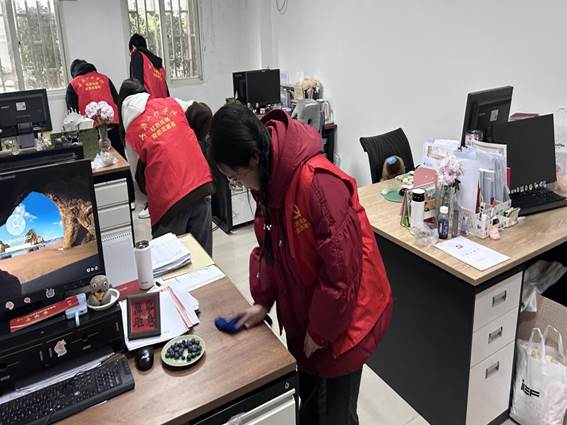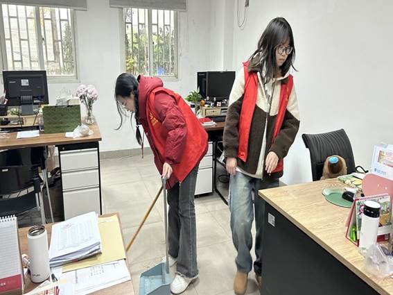 活动前进行了划分小组以及讲述了注意事项进,然后同学们手持扫帚、抹布等清洁工具,对校园内的教师办公室等区域进行了全面清理。大家分工明确,干劲十足,不怕脏、不怕累,用实际行动为校园增添了一份清新与整结。