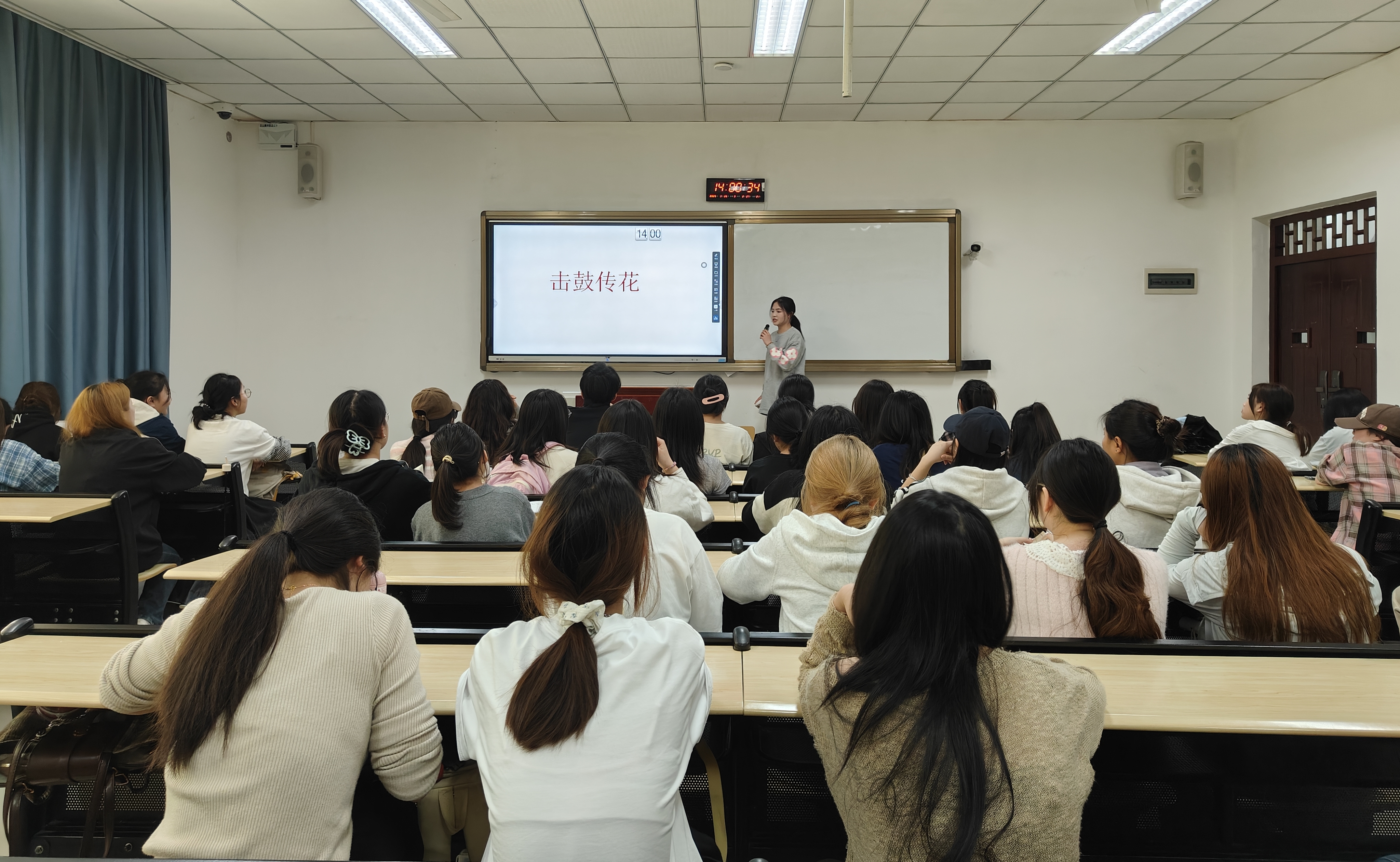 活动上,王欢同学首先以击鼓传花活动形式展开了本次演讲,营造了轻松活跃的氛围,激发了同学们的参与热情;随后进行了两会内涵介绍、两会核心精神解读、两会中的热点议题讨论以及时代使命与青年担当总结与展望。