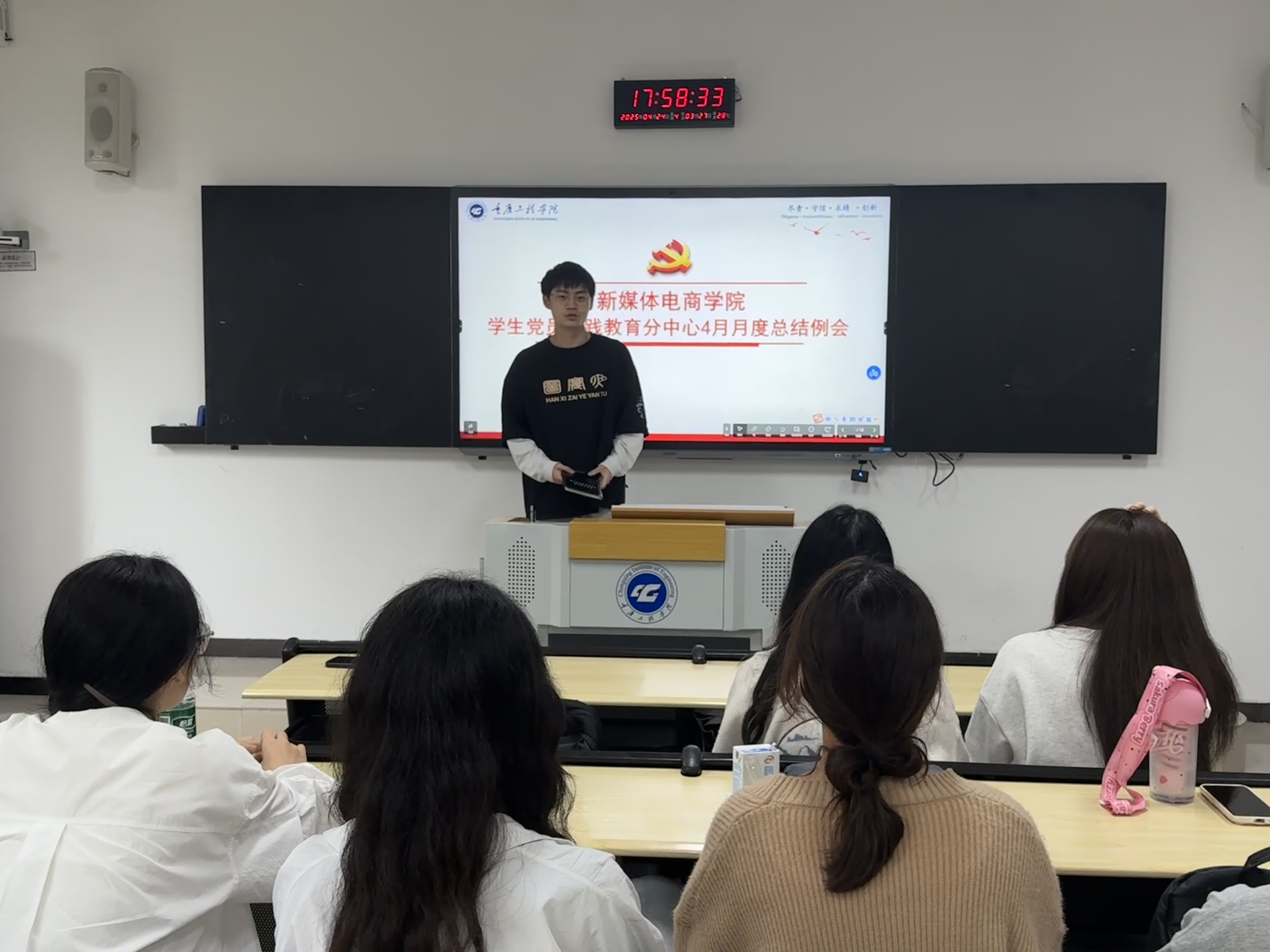 本网讯(图/文:彭珊珊)为回顾工作进展与强化目标导向,增强中心成员责任感与积极性。新媒体电商学院学生党员实践教育中心于4月24日下午在6教112召开例会,中心全体成员参会,中心负责人黄位主持。