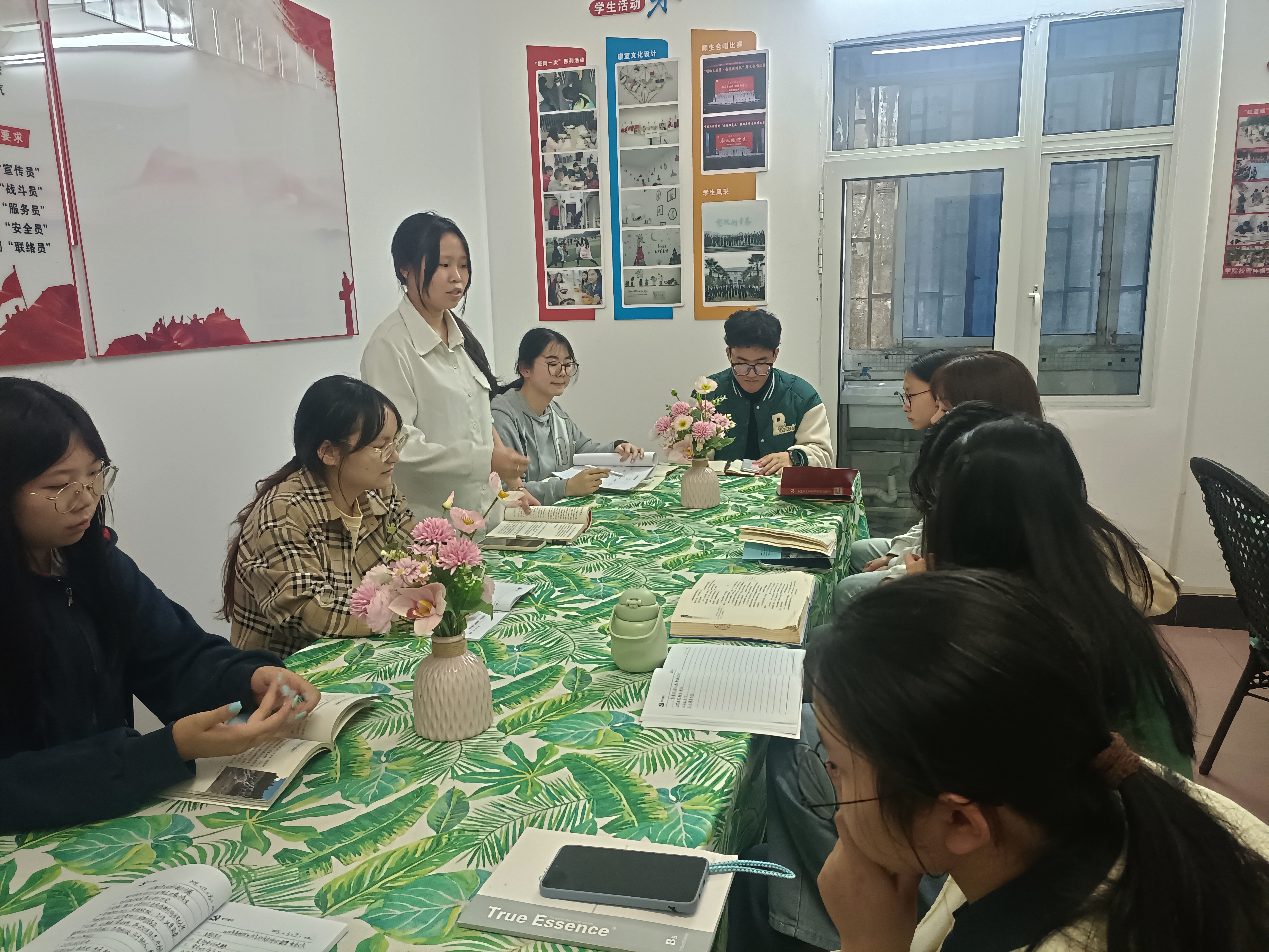 本网讯(图/文:郭霞),为深入学习贯彻习近平文化思想和习近平总书记关于推进全民阅读、建设书香社会的重要指示精神,2025年4月24日,新媒体电商学院电子商务专业学生党支部在容园五号党员活动室开展“书香润初心,共读践使命”主题活动。共有12名党员同志参加。