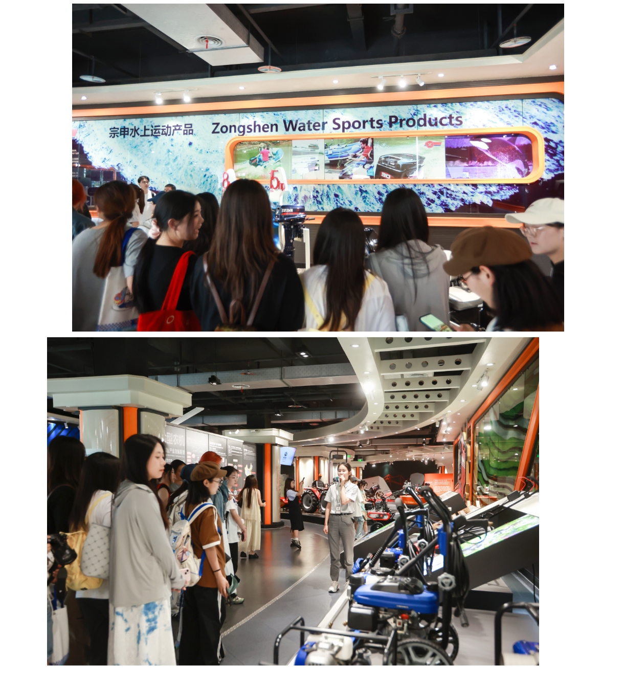 活动伊始,大家一起走进宗申发动机展览馆,通过图文展板、实物展品与多媒体影像,系统了解企业发展历程、技术创新成果及行业地位。随后,在工作人员带领下,同学们深入智能化生产车间,近距离观察发动机精密加工、智能装配等全流程环节,直观感受工业4.0背景下智能制造的高效与精准。