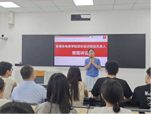 作为京东实训项目负责人,曾霞详细介绍实训流程与注意事项,凭借对项目筹备、人员安排及流程设计的全面把控,为同学们提供了清晰的“行动指南”,帮助学生明确各阶段任务与要求,有效保障实训工作能有序推进,为实训顺利开展筑牢基础。
